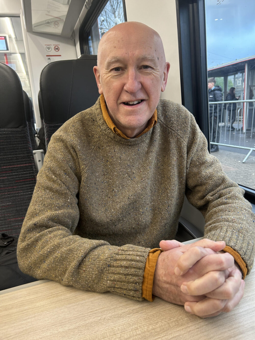 Jon Gower is Transport for Wales’ writer-in-residence. He will be travelling the breadth and length of the country over the course of a year, reporting on his travels and gathering material for The Great Book of Wales, to be published by the H’mm Foundation in late 2026.