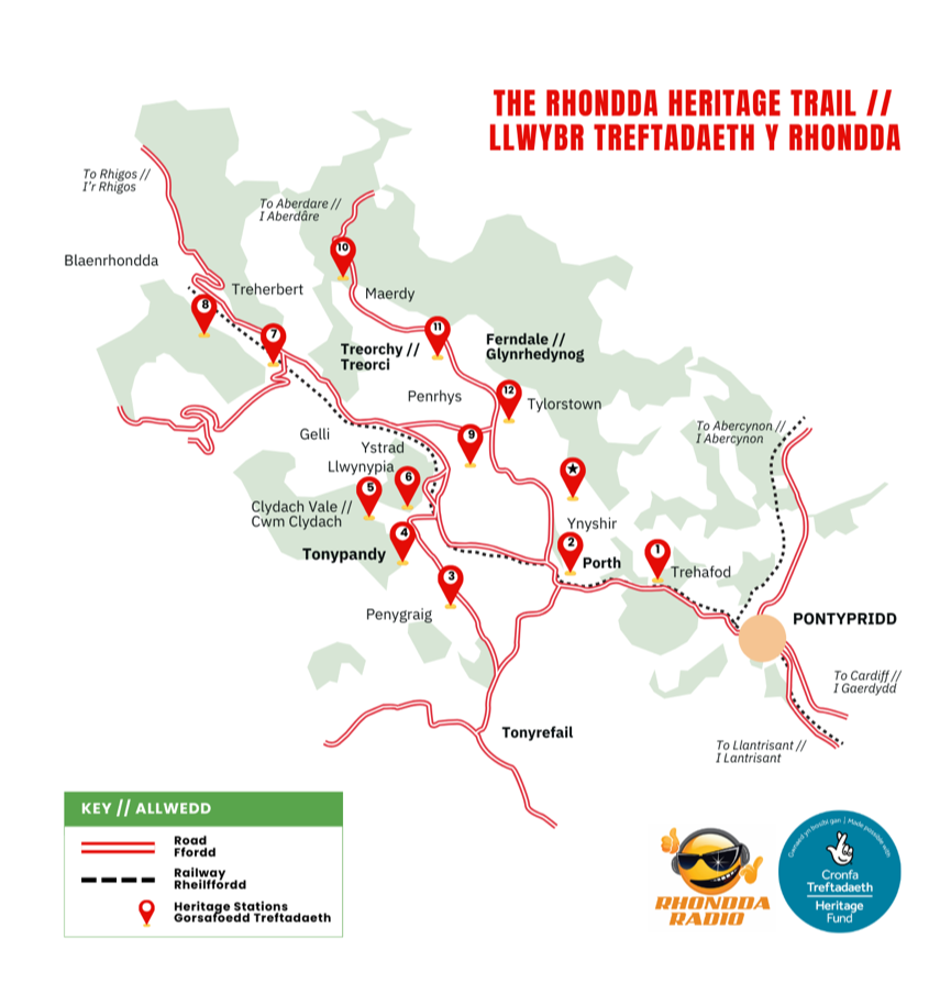 Through Pontypridd and on to Trehafod, where you can experience The Welsh Coal Mining Mining Experience pretty much at the end of the platform. It’s also the start of the Rhondda Heritage Trail, part of a physical trail through both of the Rhondda Valleys, with information stations along the way.