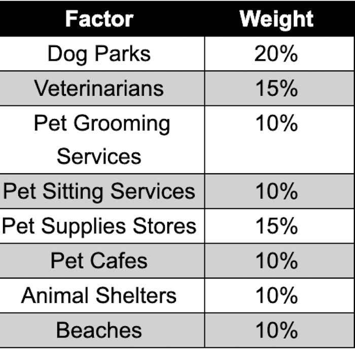 Pet accessories retailer Fur King used Foursquare Places data to analyse eight factors related to owning a dog for 355 local authorities in the UK.