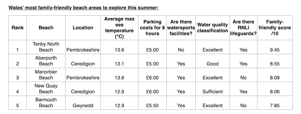 Wales has many magnificent beaches and new research has revealed the nation’s best family-friendly beach destinations.