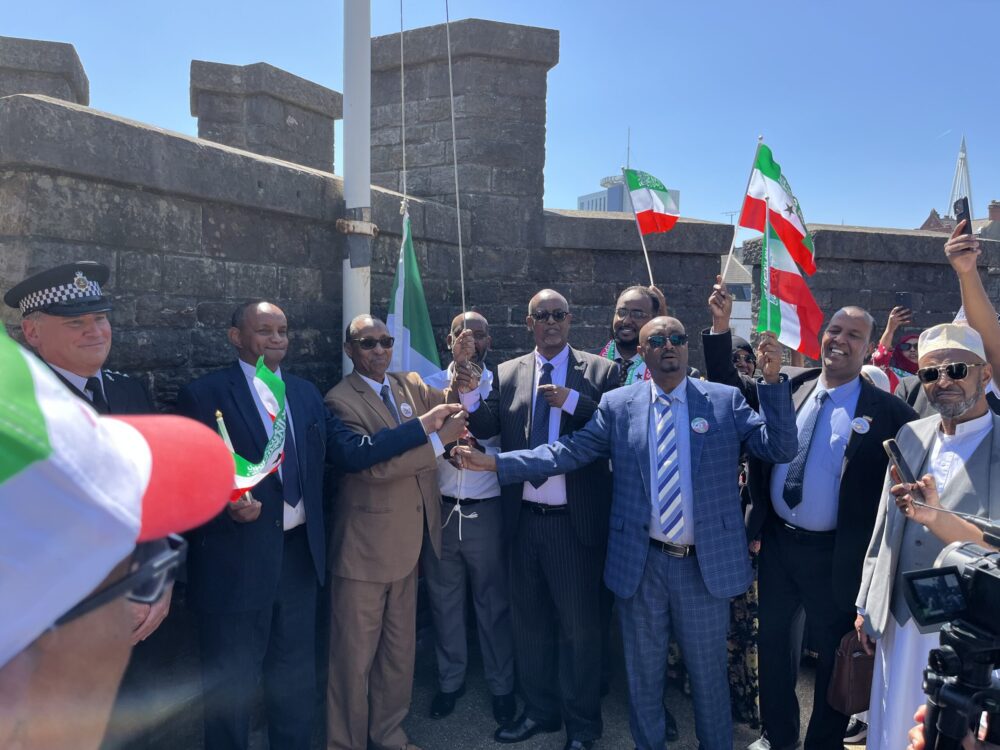 There’s something very engaging about the Somaliland community, as I have been reminded again while attending the flag-raising ceremony. Two school children from a primary school in the old docklands district of Butetown were brought along to the castle by their headteacher.