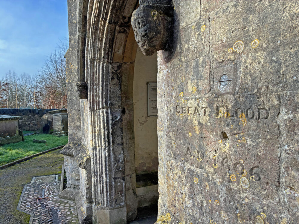 But … the church walls bear witness to the height that the flood water reached in 1607, except that the date inscribed is 1606! As with most things historical there is always a puzzle to be found.