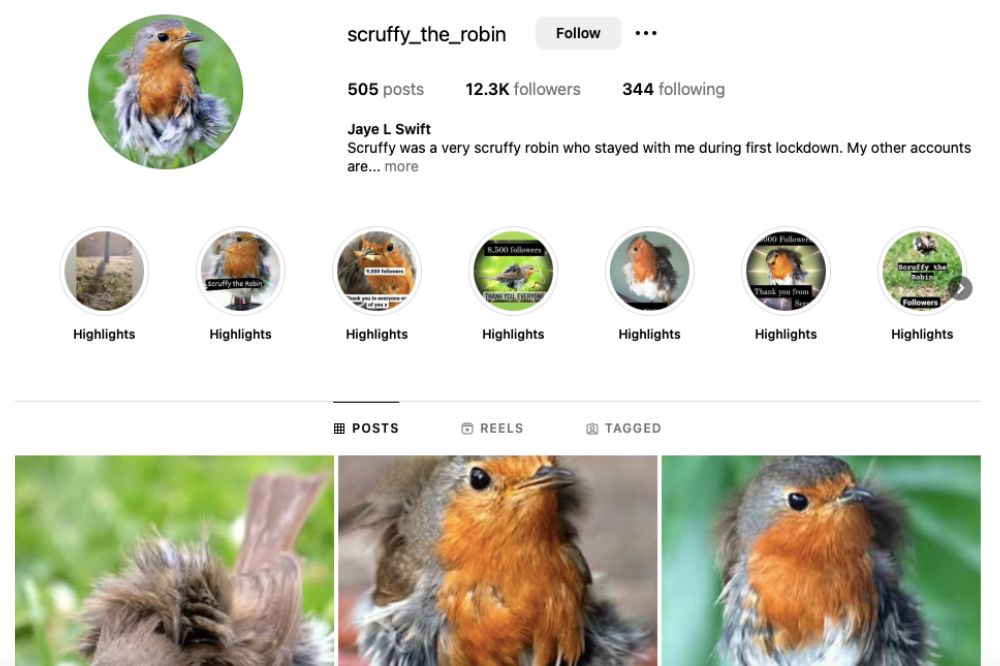 Jackie said: “I called the account ‘Scruffy the robin’ and it quickly gained over 12,000 followers with one image racking up over 24,000 hits.