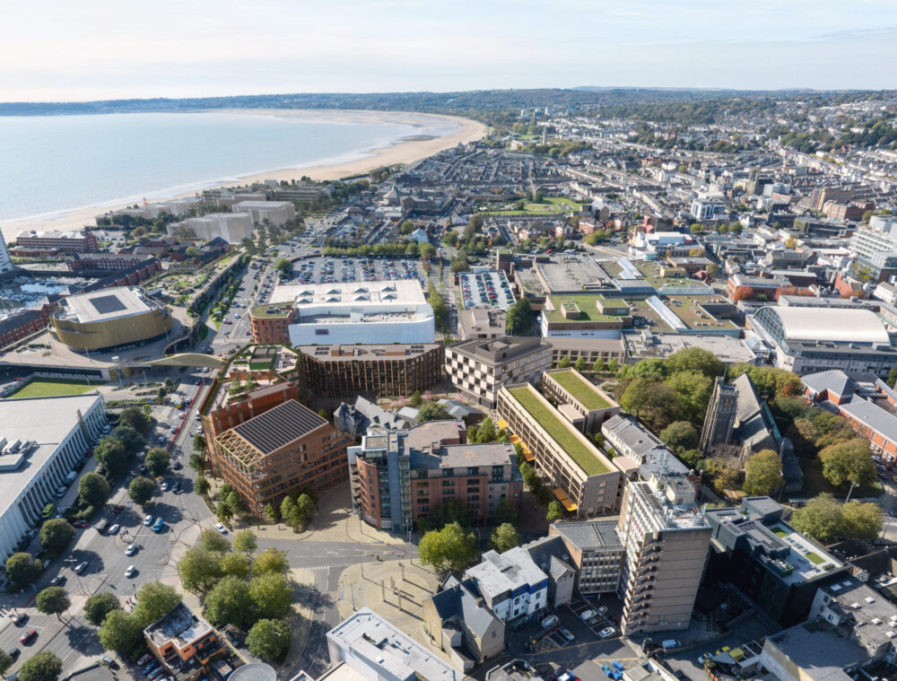 The plan is for seven new blocks featuring office, education and commercial space, plus flats, new landscaping and walkways. Outline planning permission is in place and one of the seven blocks has detailed consent and will become a public sector office hub.