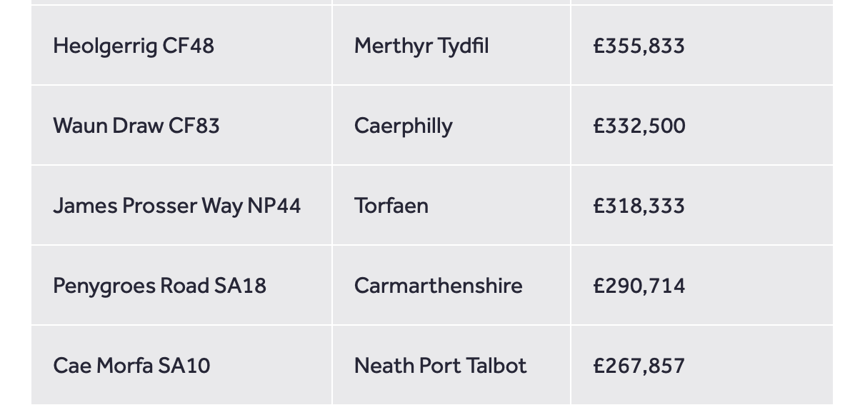 THE FULL LIST OF WALES’ MOST EXPENSIVE STREETS