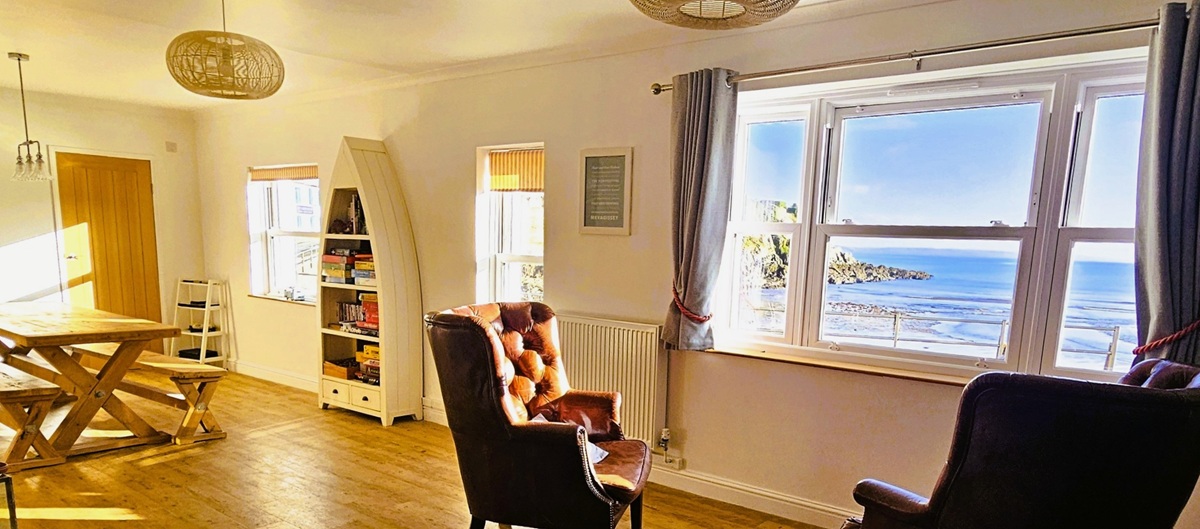 Seems that, eager to take in the soothing seascape, he’d rushed to the full‑length window – only to find twelve bobbing, bobble‑hatted women, staring right back. Turns out Portmellon is a wild-swimming hotspot… and that Tim should really wear PJs. Reader, I howled.