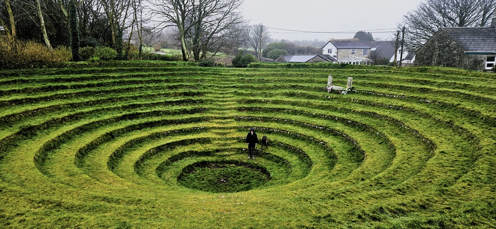 And that was why, on an inclement afternoon of horizontal rain and muffling fog, we found ourselves at Gwennap Pit. I’d chosen our destination partly for the glamorous allure of grassy subsidence, partly because it was open-air and closure-proof, but mainly because Google Maps hinted at attraction-adjacent parking. Score.
