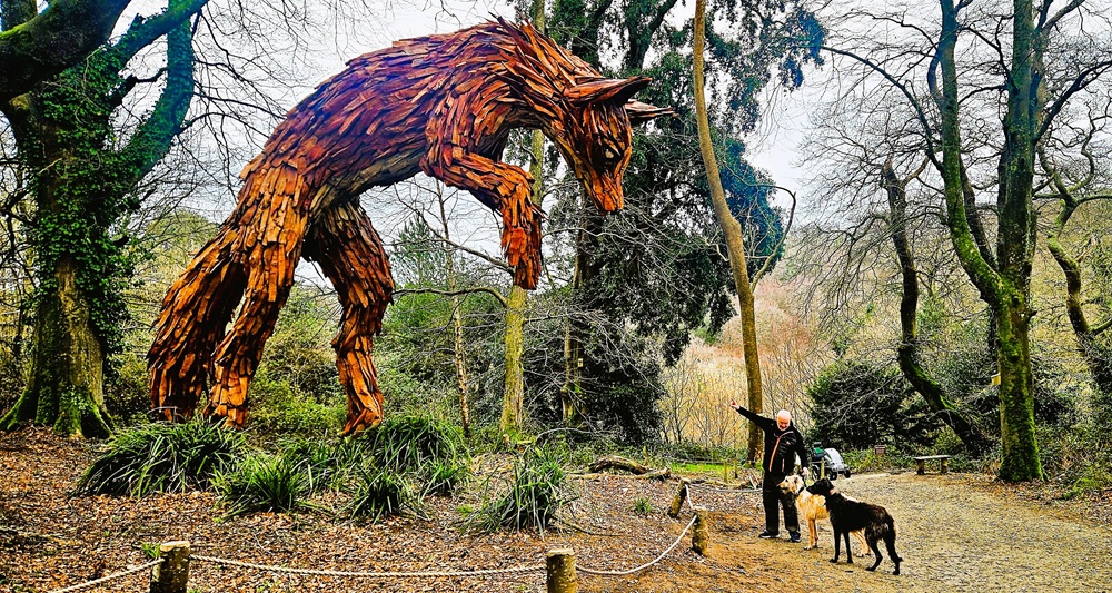 But lovely as the setting was, it was actually a sculpture that drew us – okay Tim, drew me – to Heligan, and Bluebell bossed the steep slog that led to Lowanes (Cornish for vixen). And WOW! She was immense, bursting from the scrub to loom above us in a distinctly feral fashion.