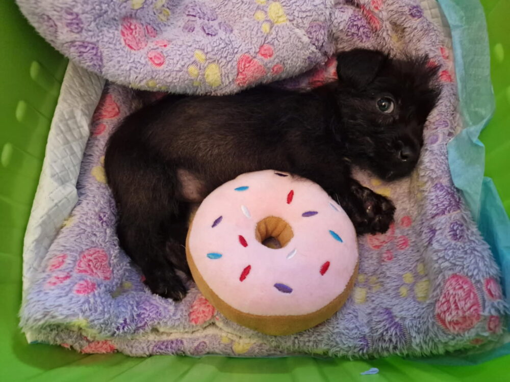 An appeal was launched for information on the puppy who was “extremely small for her age” as she weighed just 900 grams (32 ounces) – similar to the weight of a loaf of bread. She also had Ricketts, a docked tail and was struggling to walk using all four of her legs.