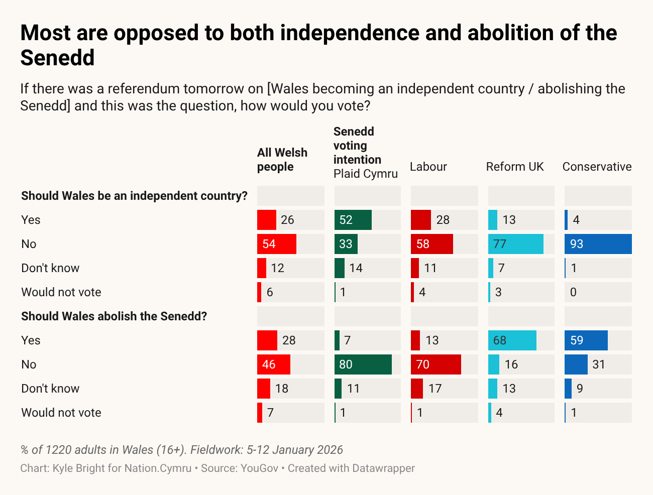 Voters oppose abolition of the Senedd and independence