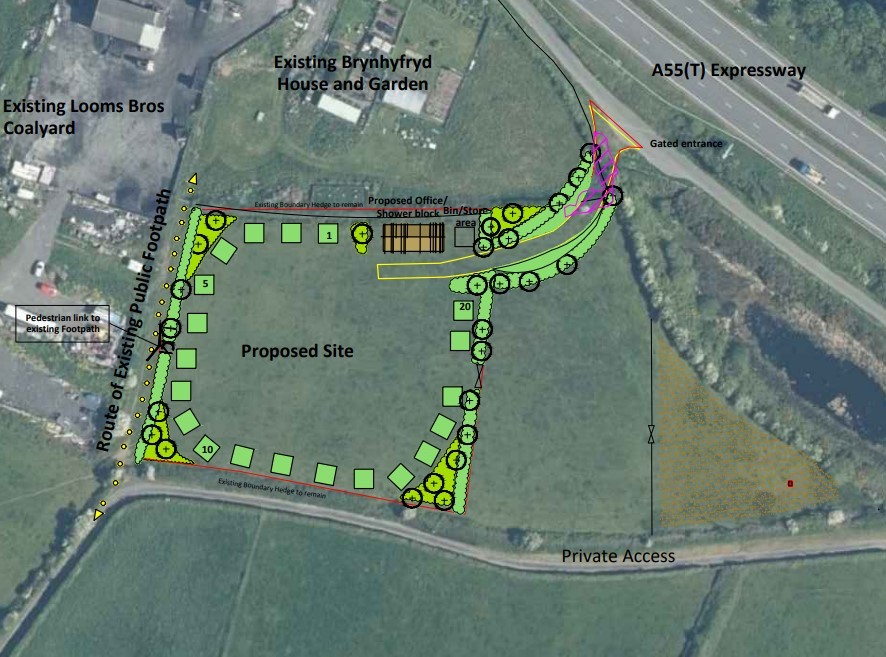 A planning support statement said the proposed development comprised of a small seasonal touring site on open farmland adjoining Bryn Hyfryd (coal depot and yard for Looms Bros).
