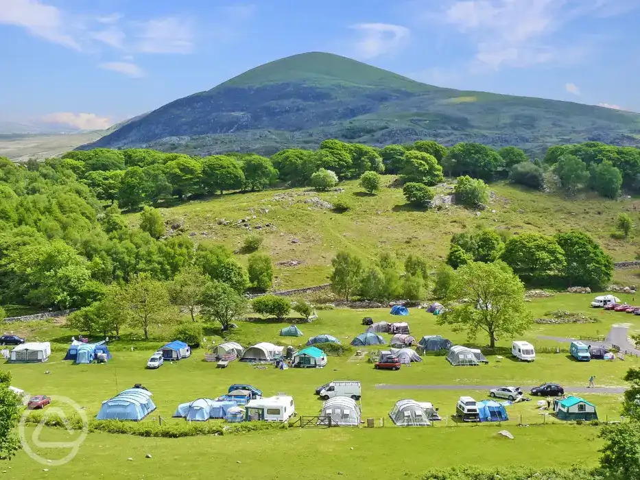 Afon Nantcol flows through the campsite, offering a spot for paddling, wild swimming, or fishing. The waterfall with which it shares its name is just a hundred metres from the site.