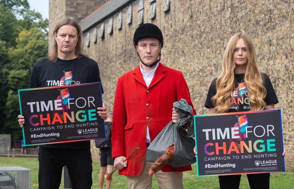 Campaigners from animal welfare charity the League Against Cruel Sports protested in Cardiff to expose the savagery of fox hunting they say is still going on despite the ban.