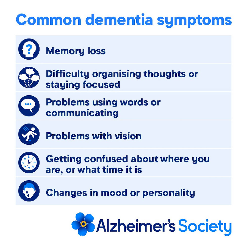 Dementia is not a natural part of ageing. The six most common symptoms of dementia include: