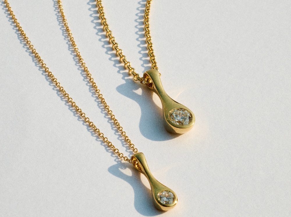 There are also wedding bands in 18 carat yellow gold designs priced from £1,295 and jewellery in the “teardrop collection” priced from £595.