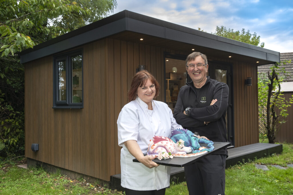 Helen’s chances have been boosted by the tailor-made studio she had installed by Rubicon Garden Rooms which she now uses as her creative kitchen, teaching space and cake design hub.