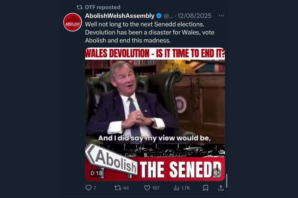 We noted that his bio on X states: “Newport Conservative and Unionist Councillor, former Constituency Chairman and former SE Wales Area Chairman. Former Mayor of Newport. Abolish the Senedd.”