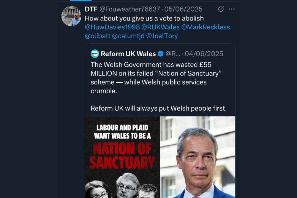 So basically bloke has the same opinion on the Welsh Parliament and Wales as Putin has on the Ukrainian Parliament and the Ukraine. I suppose the pro-Putin Reform UK is the party for him.