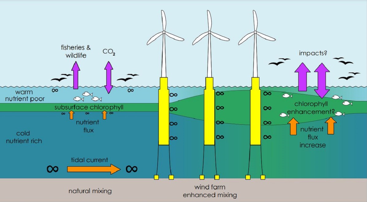 “Turbulent mixing determines the timing and rate of the food supply on which marine ecosystem and key species rely. Flow past deep water wind farms will introduce ‘anthropogenic’ or man-made turbulence, and increase mixing.