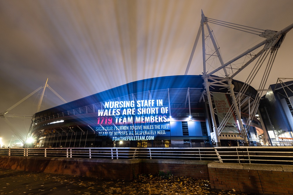 Campaign drawing attention to nursing shortages in Wales beamed onto Cardiff landmarks