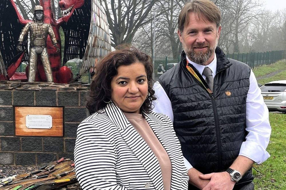 Affectionately named ‘JohnFree’, the dragon was created in partnership with Wrexham County Borough Council and features kitchen knives, samurai swords and bayonets welded into steel frames.