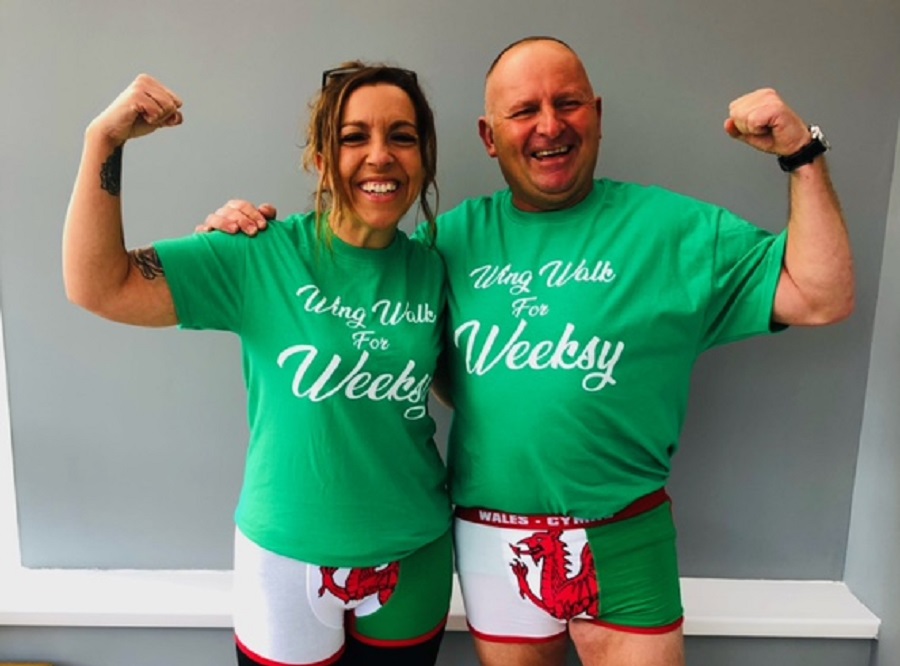 Ali donned a ‘Wing Walk for Weeksy’ T-shirt and even wore a pair of Welsh boxer shorts during the challenge as a tribute to the former paratrooper, who has received a letter of support from Manchester United manager Ole Gunnar Solskjaer since his diagnosis.