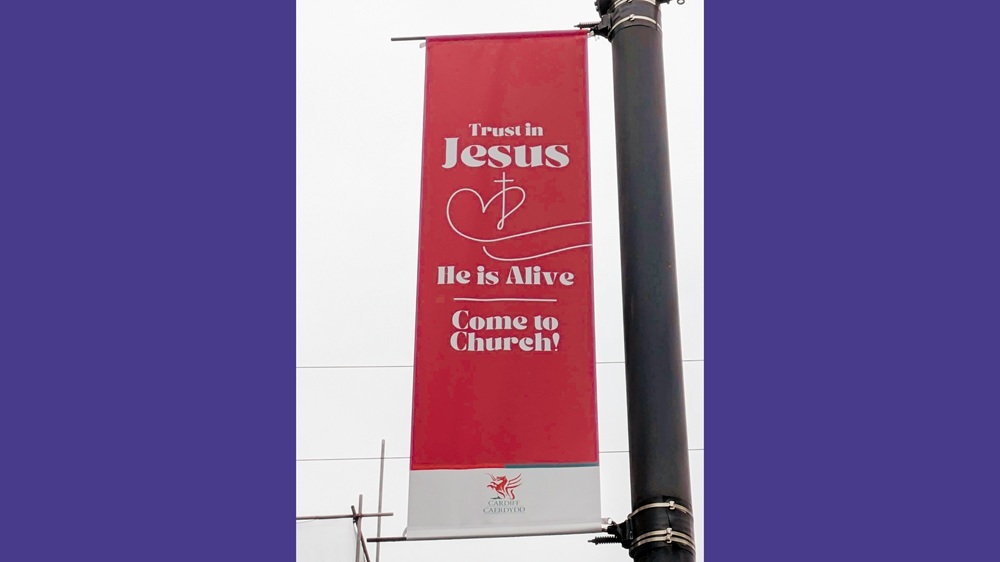 Humanists UK has criticised Cardiff council for displaying banners across the city in the run-up to Easter which feature text saying: “Trust in Jesus, He is Alive, Come to Church!’”and then feature its logo at the bottom.