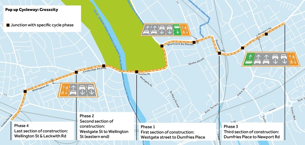 Another pop-up cycleway along Tyndall Street also remains unfinished. Initial plans showed this route connecting along to Penarth Road, south of the train station, but this work has not yet begun.