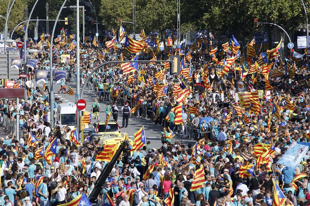 With a referendum just weeks away, more than a million people poured into the streets of Barcelona as supporters of Catalan independence of all political persuasions united in a pre-poll show of strength, hopeful they were on the brink of making history.