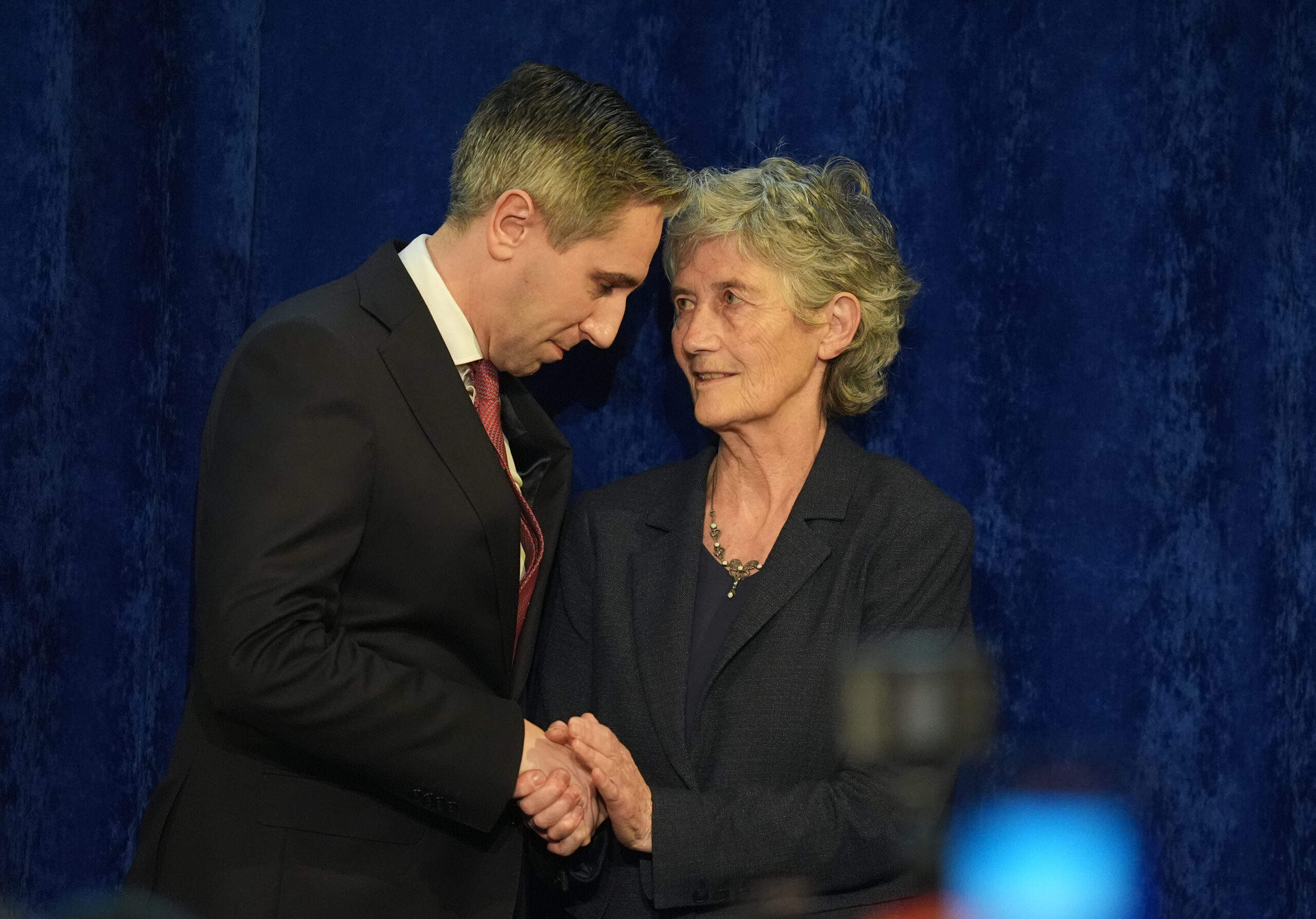 The former barrister from Galway, who secured 63% of first preferences, was embraced by the leaders of the left-wing opposition parties that united to back her as a presidential candidate as she arrived at Dublin Castle for the result to be confirmed.