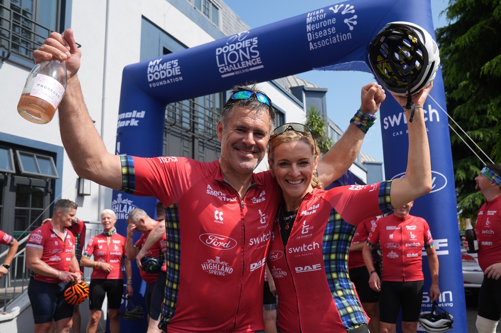 Celebrities and rugby stars complete cycle for MND research in Dublin