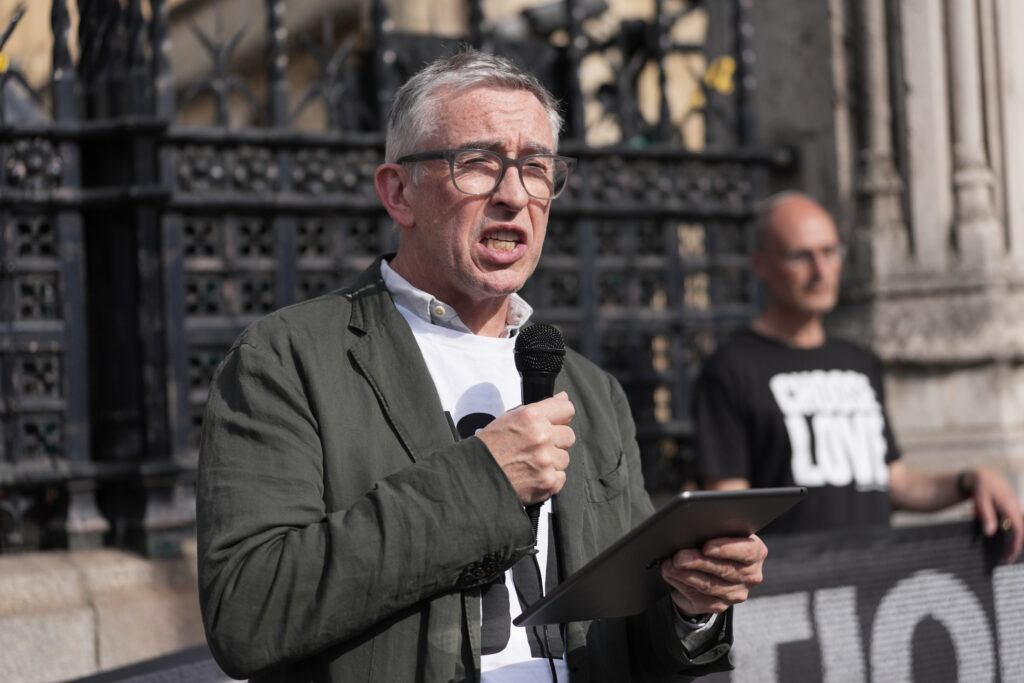 Actors including Steve Coogan and Juliet Stevenson stood in the shadow of the Elizabeth Tower to help read out the names of more than 16,000 children as part of the Choose Love-organised campaign to “honour” those killed in the last 19 months.