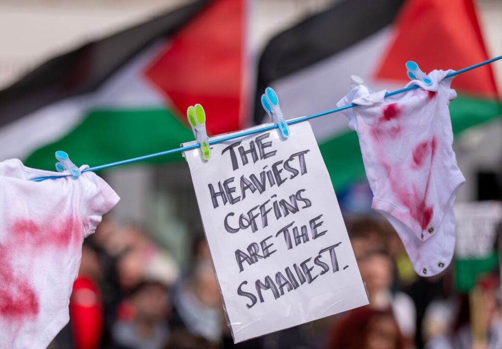 “I could have been born in Palestine and had my home torn down, or in Gaza where I would live in a daily hell surrounded by death, trying to survive against all the odds. My children, my grandchildren, could be any one of the children we see on our screens, from the safety of our hand held devices on social media maimed, hungry & dying.”
