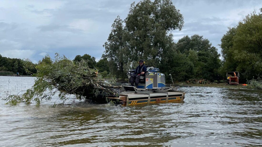 About 75% of the trees on the crannog, mostly willow, were cut down to ground level. These will regrow to help protect the crannog’s edges.