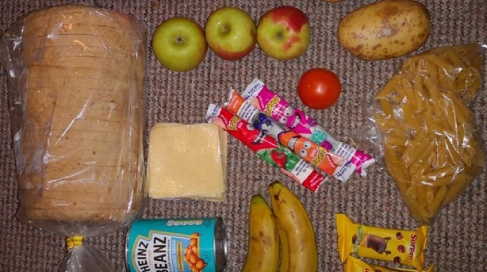 A photo showing a measly parcel given to a family in England has been shared thousands of times on Twitter and contrasted by some to a package provided in Caerphilly which was praised.