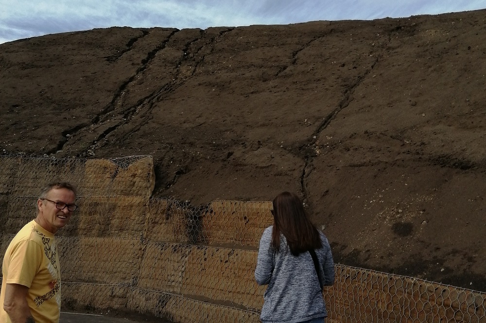“There is a sort of membrane net placed around the earth but to be honest, given the height of the pile, it doesn’t seem substantial enough to stop it collapsing.
