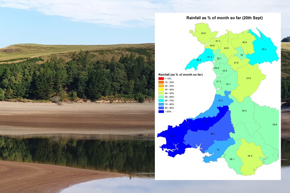 “All parts of Wales have received some rainfall over the past three weeks, with Wales as a whole receiving 62% of the long-term average rainfall for the month so far [by September 20],” said NRW. “This ranges significantly from 91.6% in Pembrokeshire to 40.6% on Anglesey.