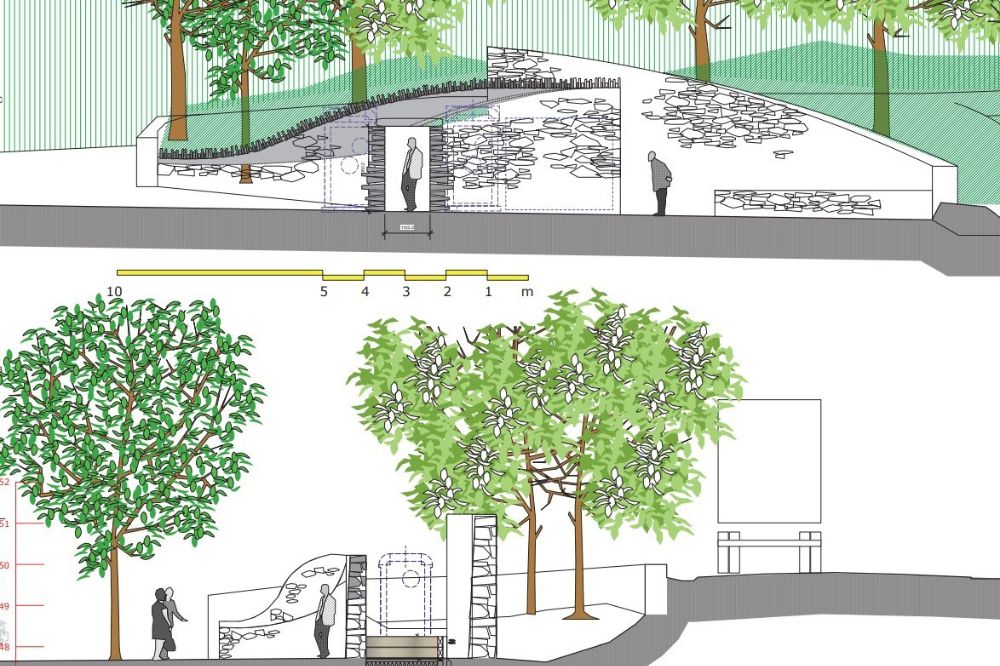 The zero discharge toilets are proposed to sit behind an existing stone screen wall.