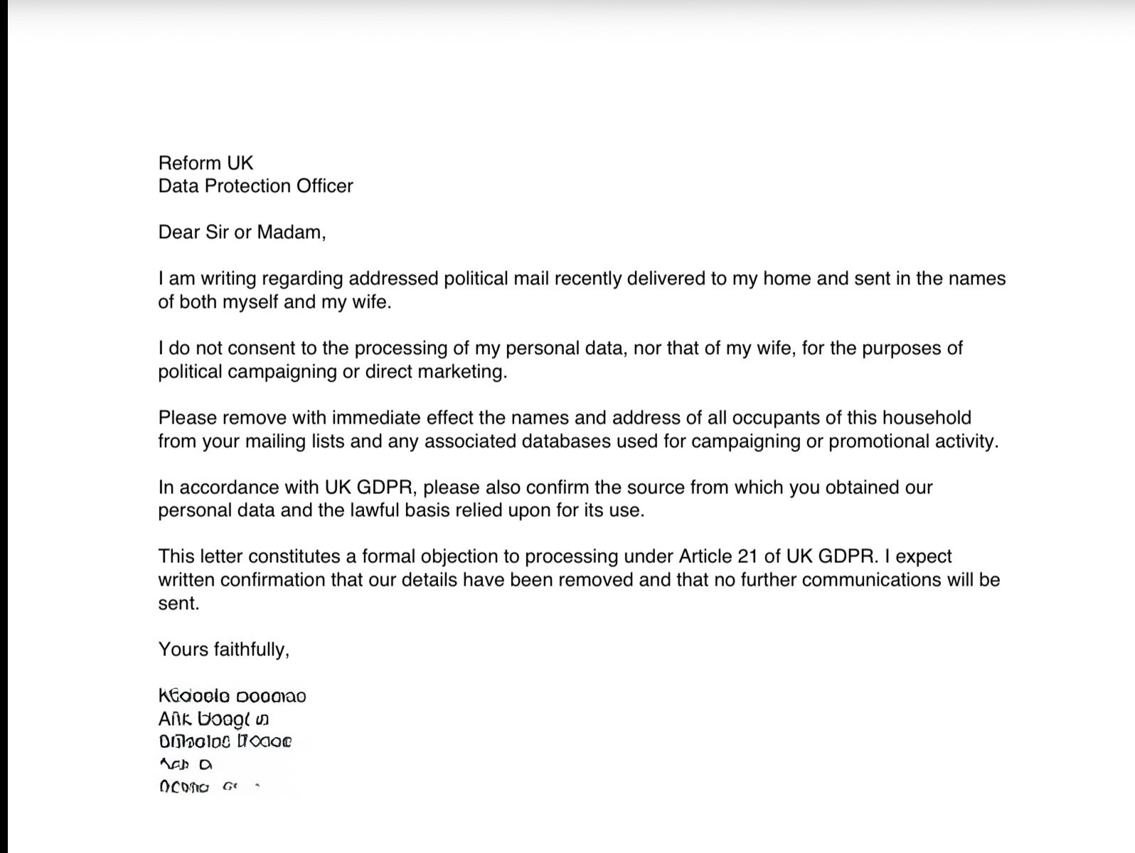 So I returned it all with a GDPR objection via their Freepost envelope—postage paid by them, admin work guaranteed.