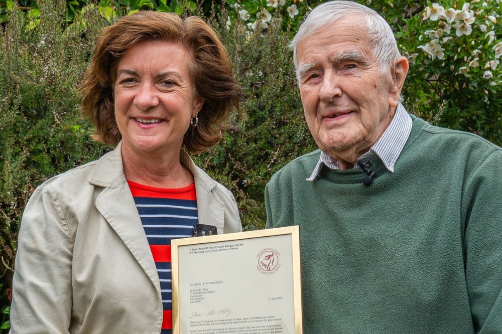 Duncan Hilling from Saundersfoot, who joined the RAF in April 1944 before transferring to the Royal Welch Fusiliers, received the tribute from Baroness Eluned Morgan in recognition of his extraordinary service during the war.
