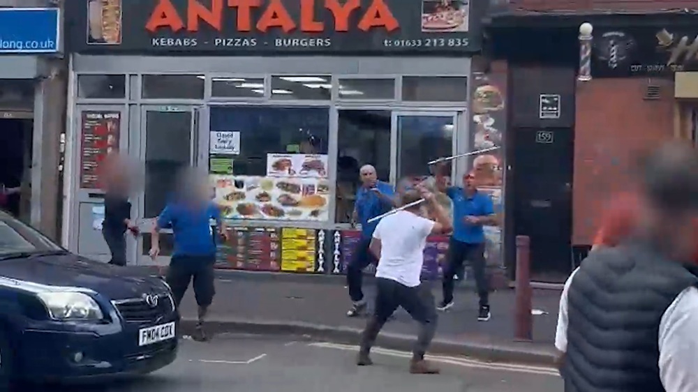 Footage showed several men fighting in broad daylight with metal poles and kebab skewers, sparking alarm among passers-by and drawing a large police response.