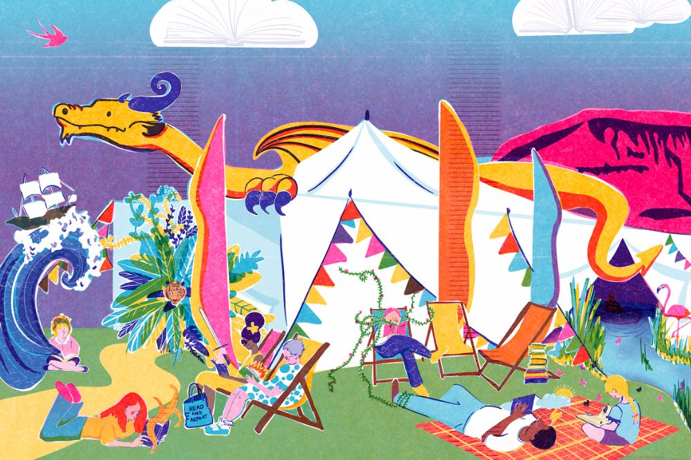 Charlotte Hepburn said: “I’m so excited to be Hay Festival Illustrator in Residence 2026. I wanted the programme cover to celebrate the escapism of books and the joy of reading, using bold colour and risograph texture to create something playful, welcoming, and full of life. I hope it makes people smile.”