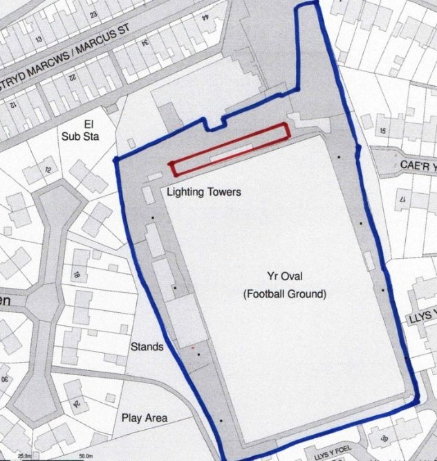 Cyngor Gwynedd’s planners received a full application for the demolition and removal of the existing structure, and construction of a 600 seater stand to the north terrace of Oval football pitch, which is in the centre of the town on Marcus Street.