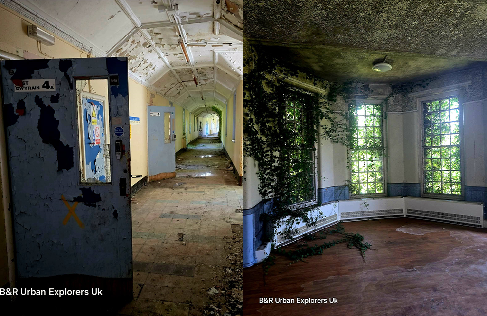 Urban explorers Beth and Robbie, who run the social media channel B&R Urban Explorers UK, documented the derelict state of the Grade II hospital, showing how the level of decay and overgrowth that has taken hold of the site since its closure.
