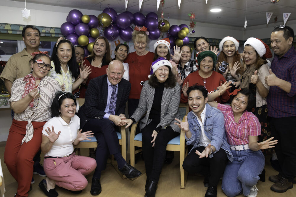 Founders Mario Kreft MBE and his wife, Gill, toured Pendine Park’s care homes, thanking staff and residents during joint Christmas and anniversary celebrations.