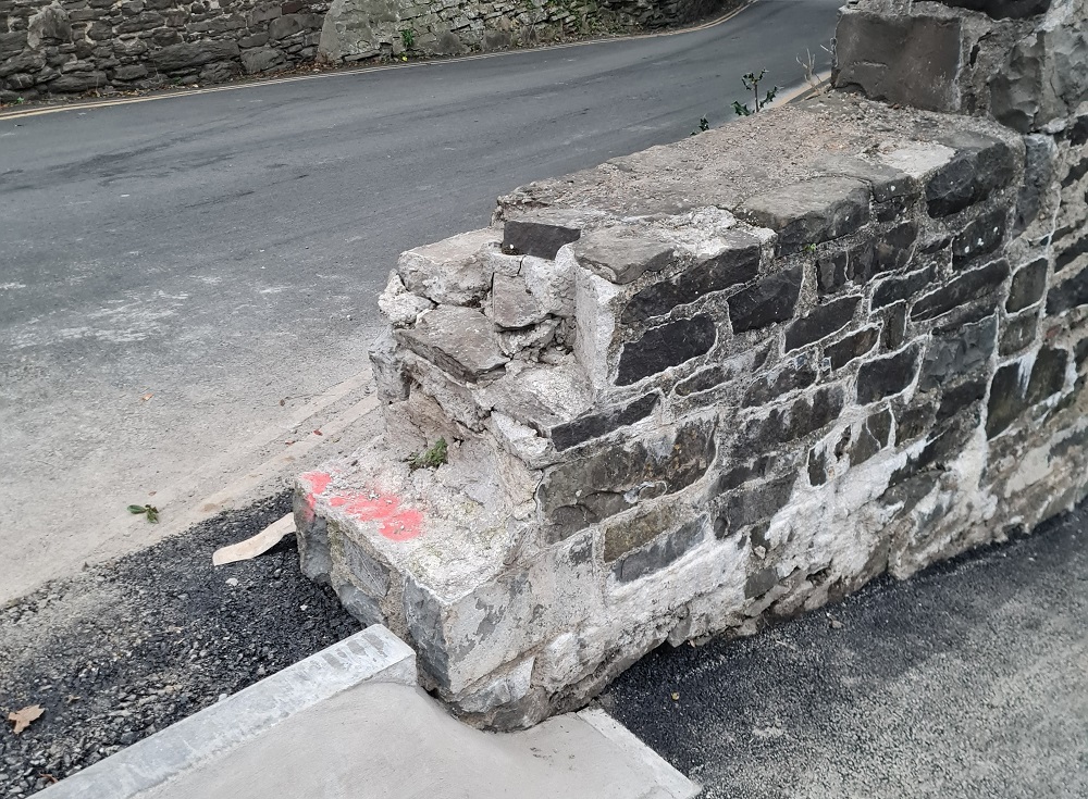 Council contractors have recently been laying a new pavement on the St Agnes Road side of the arch on Upper Gate Street in Conwy as part of improvements to Sychnant Pass Road.