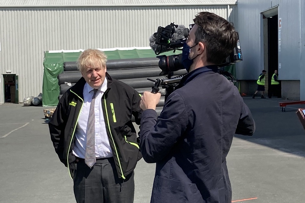 Mr Johnson’s tour of Net World Sports on the town’s industrial estate also followed shortly after claims by his former chief aide Dominic Cummings that the refurbishment of his flat was being funded by Conservative Party donors.