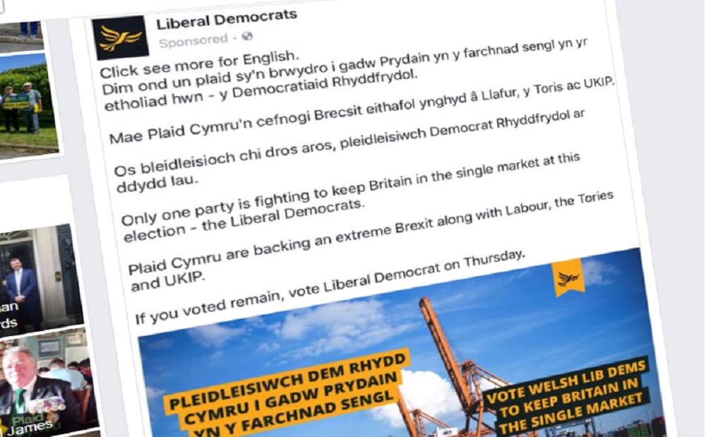 The Liberal Democrats have been accused of ‘lies’ after a Facebook advert claimed that Plaid Cymru were backing “an extreme Brexit”.
