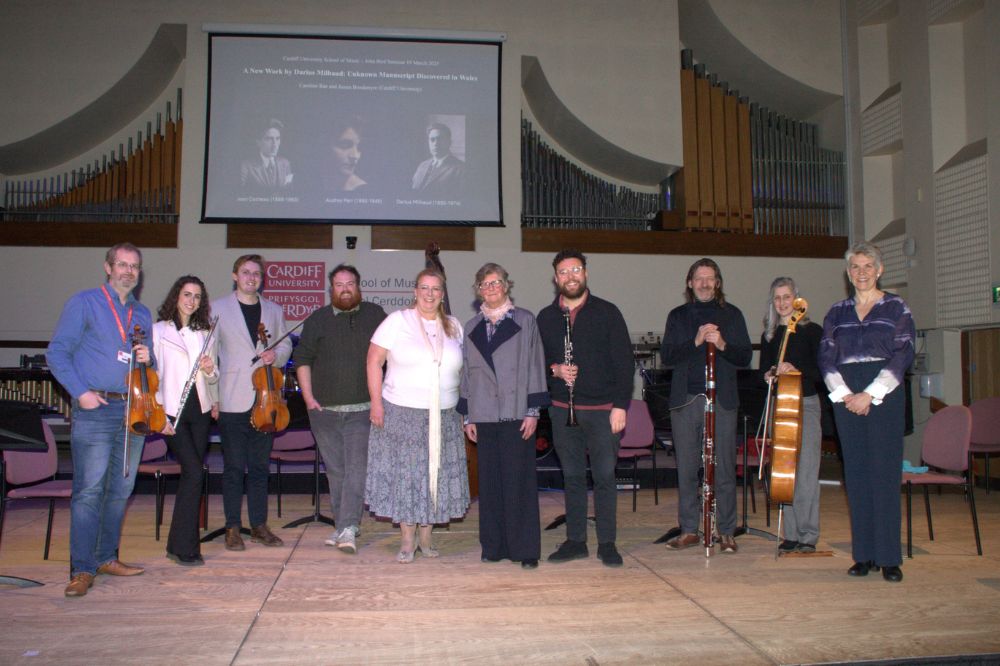 Cardiff University School of Music academic Professor Caroline Rae discovered the unknown manuscript by composer Darius Milhaud in Brecon, with her PhD student James Brookmyre.