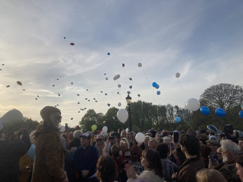 Suggs sang It Must Be Love as balloons were released in memory of Mr Sullivan, who was stabbed during a fight in Primrose Hill in the early evening of April 7.